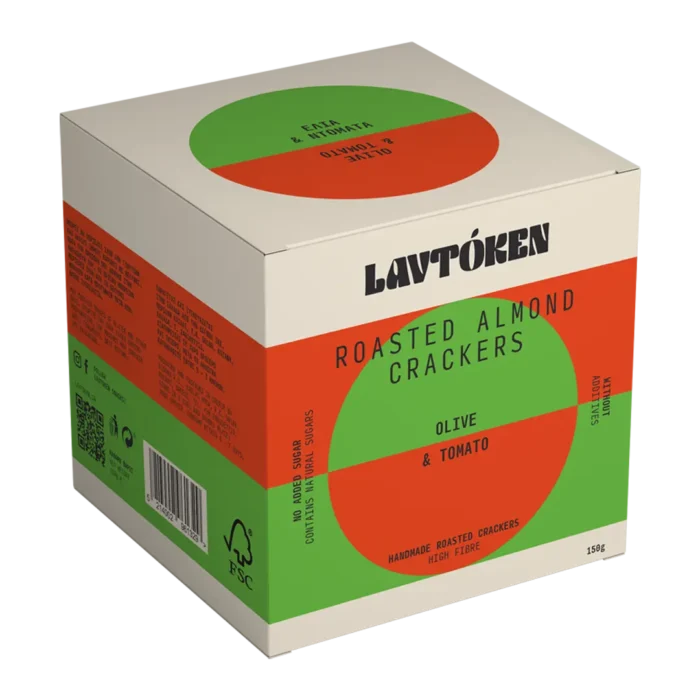 Handmade baked crackers with a rich base of ground almonds, combined with dried olives and sun-dried tomatoes that bring a distinctive Mediterranean character.