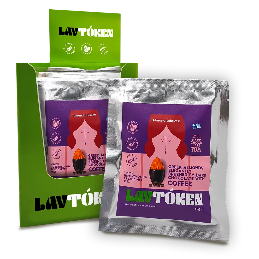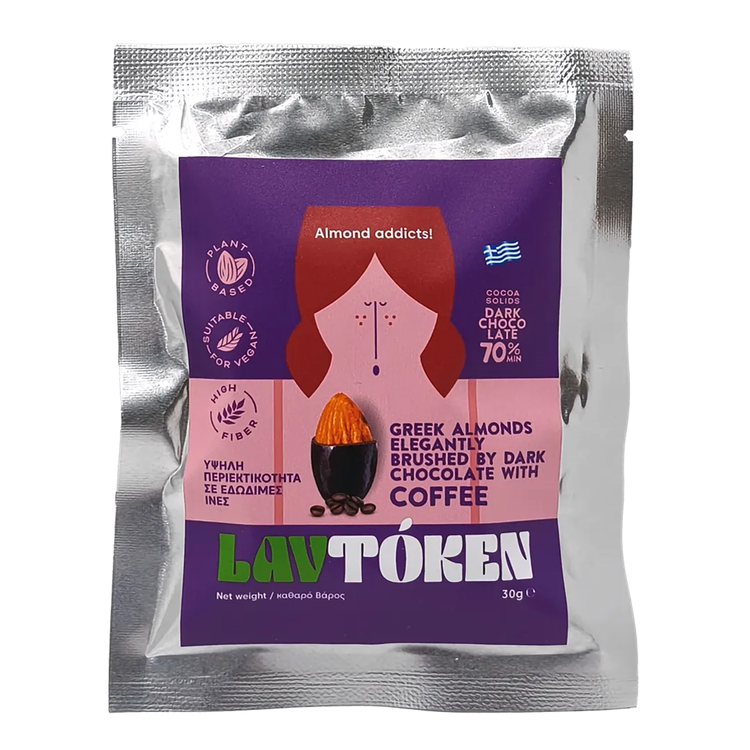 Ελληνικά ολόκληρα αμύγδαλα με βελούδινη επικάλυψη μαύρης σοκολάτας και καφέ, δημιουργούν έναν πλούσιο και αρωματικό συνδυασμό που προσφέρει έντονη γεύση και απολαυστική εμπειρία σε κάθε γευστική στιγμή