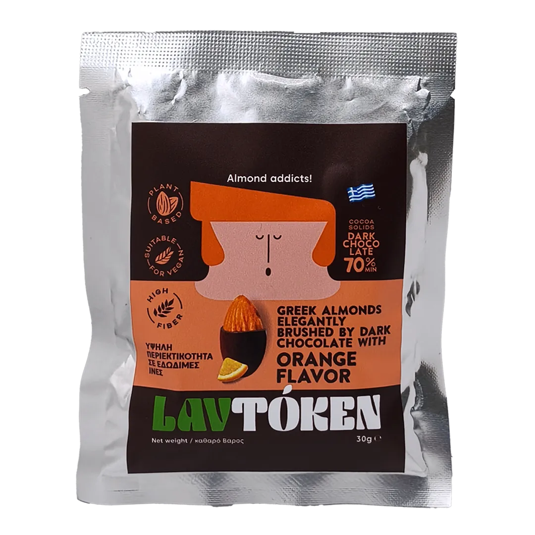Ελληνικά ολόκληρα αμύγδαλα, επικαλυμμένα με πλούσια μαύρη σοκολάτα και αρωματικό πορτοκάλι, δημιουργούν έναν εκλεπτυσμένο συνδυασμό που χαρίζει απόλαυση σε κάθε μπουκιά